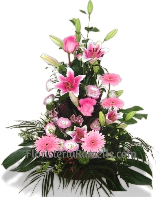 Bonito y elegante por sus hermosas flores es este Centro Flores Liberia. Es un centro de flores de regalo compuesto por algunas de las mejores flores que nos ofrece la naturaleza, como es el lilium, las rosas, el lisianthums, todo ello decorado con hermosos verdes. Si quieres comprar flores online, en Floristería Ramells, su floristería online, expertos en el arte floral, podemos ayudarle a hacer el regalo perfecto. Haremos llegar a su ser querido, todo el amor y alegría que quiere demostrar con este bonito centro de flores a domicilio. Sin duda, lo que quiere es hacer el mejor regalo con este centro de flores para regalar a empresa.