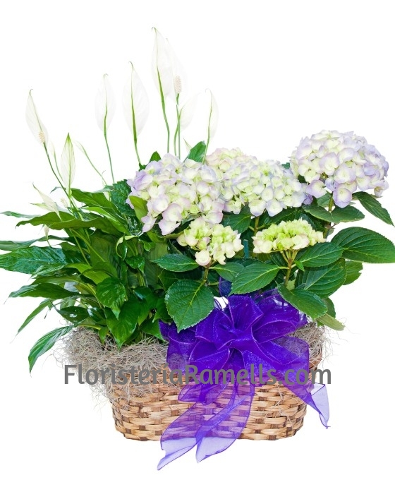 Silvestre, es esta Cesta Plantas Toronto, compuesta por bonitas plantas como es el spahthiphylium, la hortensia, todo ello apoyado en una cesta de mimbre. Es el mejor regalo, para sorprender y homenajear a una persona apreciada y querida. Nuestras Cesta Plantas Toronto, están realizados siempre con plantas de primera calidad y frescas. Son suministradas diariamente por proveedores nacionales e internacionales. Las cestas de plantas de regalo, están realizados siempre por floristas profesionales, especialistas en el Arte Floral, por lo que siempre presentamos un producto fresco y elaborado con mucho mimo. En Floristería Ramells, su floristería online, expertos en el arte floral, podemos ayudarle a hacer el regalo perfecto. Haremos llegar a su ser querido, todo el amor y alegría que quiere demostrar con este bonita cesta de flores a domicilio. Sin duda, lo que quiere es hacer el mejor regalo.