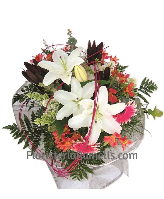 Desde nuestra Floristería online Floristería Ramells, nos es gratificante dar el mejor servicio a nuestros clientes. Sabemos lo importante que es para usted esta entrega. Un regalo no se hace todos los días. No dude en comunicarnos, cualquier salvedad al respecto, para que la entrega de este bonito ramo de flores, sea el regalo perfecto. En la floristería online de Floristería Ramells ofrecemos. un servicio de envío de flores con la compra de cualquiera de nuestras composiciones florales. Indique cual es el mejor horario para hacer la entrega, el lugar al que quiere enviarlo o cualquier otra circunstancia que sea importante, para que nuestros floristas puedan realizar la entrega sin contratiempos. Si quieres comprar flores online y estás buscando una floristería online de entre las floristerías de Mahón, Floristería Ramells te ofrece los emjores ramos de flores para regalar.