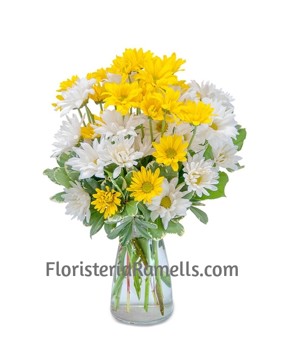 Podemos adjuntar a este Ramo de Margaritas, diversos complementos que tenemos en nuestra floristería online, a su completa disposición: cerámicas, jarrones, bombones, peluches, vino, champagne, globos, tarjetas … o cualquier otro detalle que se le ocurra. Consúltenos, si así lo desea, sin ningún compromiso. Como floristas profesionales que somos, le ayudaremos en todo lo que nos sea posible.